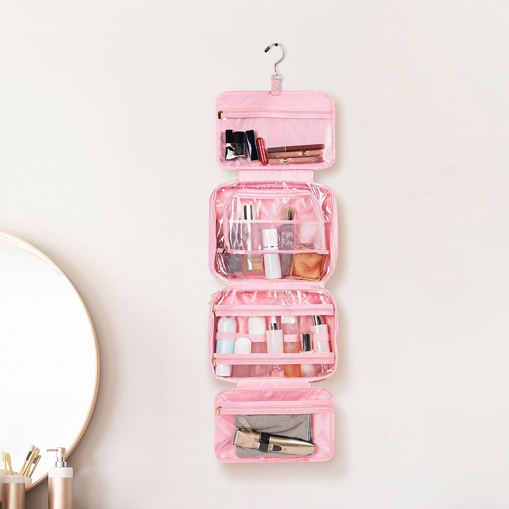 Fabricada con material de poliéster de alta calidad, esta bolsa presenta un exterior resistente al agua y duradero para salvaguardar sus pertenencias. En el interior, cuenta con un gancho metálico antideslizante giratorio de 360 grados que puede utilizarse como organizador colgante, incluso para un uso prolongado sin que se deforme ni se afloje. Además, la bolsa está equipada con una cremallera bidireccional que se desliza suavemente al abrirla y cerrarla, minimizando el riesgo de atascos. Incluso si la bolsa no está completamente abierta, el acceso a sus objetos se realiza sin esfuerzo.