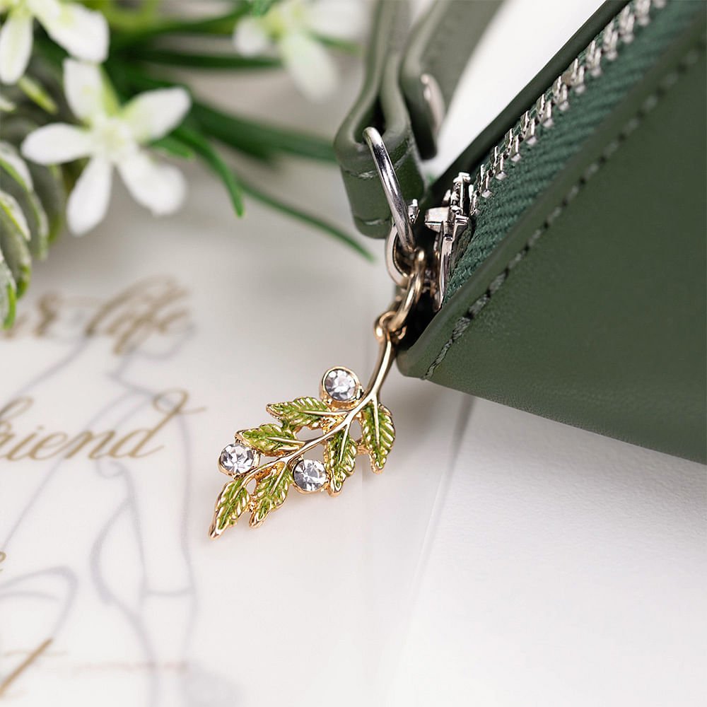 El estampado de hojas de parra piramidales añade un toque de elegancia y sofisticación al bolso, convirtiéndolo en un accesorio con estilo para la mujer.