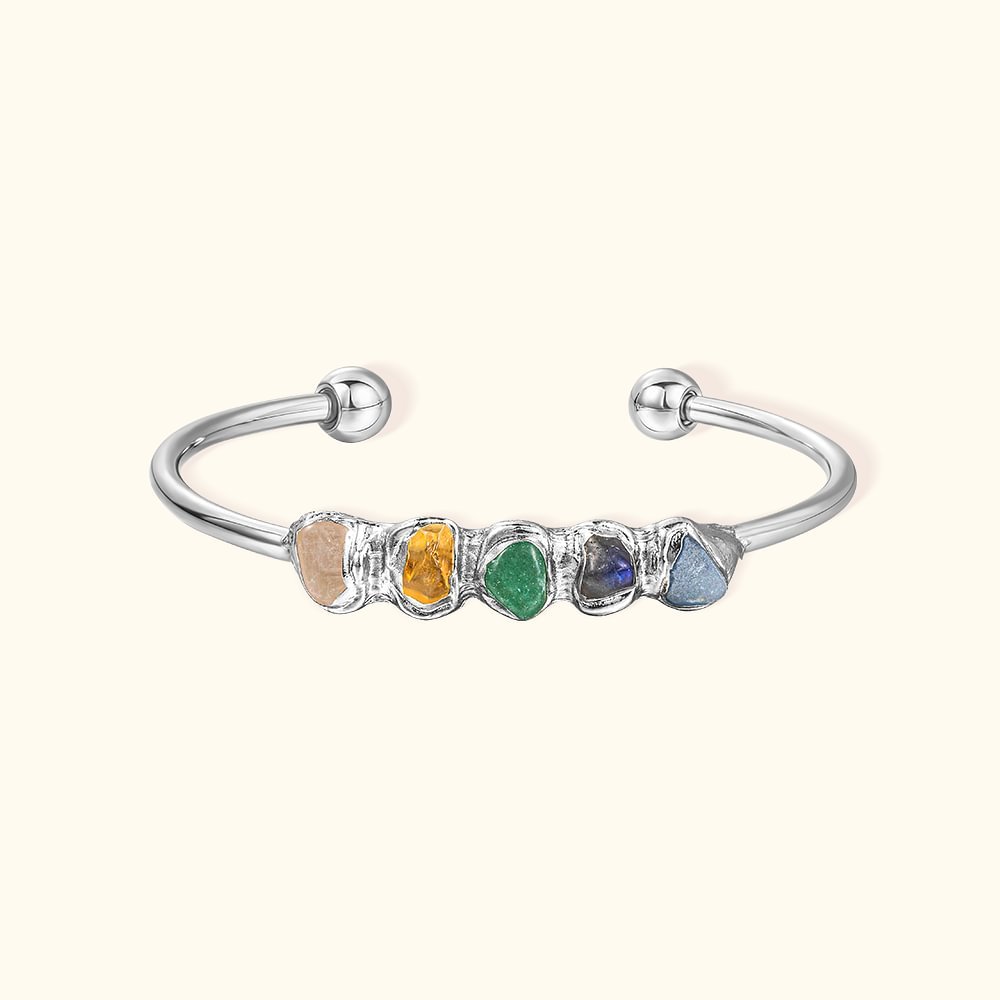 La pulsera muestra la belleza natural de los cristales en bruto, cada uno con su forma, tamaño, color, claridad y textura únicos, lo que hace que los cristales naturales varíen ligeramente de sus representaciones publicitarias debido a su base científica. Esta variación añade autenticidad y encanto a la pulsera.