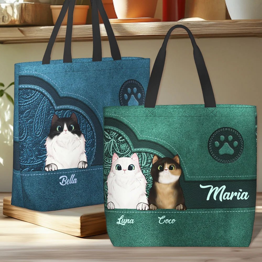 Bolsa tote reutilizable personalizado con 1-4 gatos en patrón gran capacidad con nombre regalo de cumpleaños para amantes de los gatos y mascotas