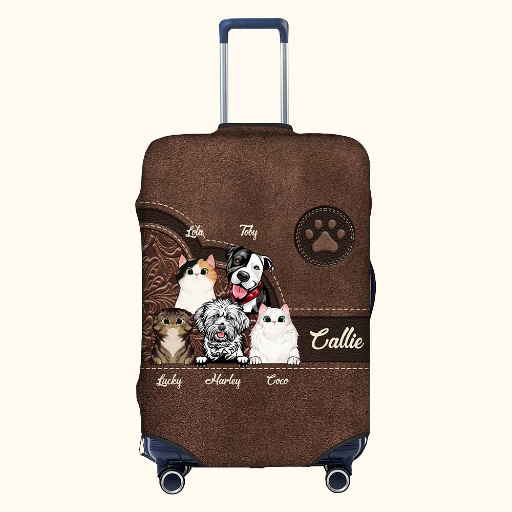 Esta funda de equipaje se puede personalizar con 1-6 dibujos animados de perros y gatos y 8 colores diferentes. Puede añadir el nombre de su mascota y su nombre para expresar su amor por su mascota y dejar que su mascota siempre con usted.