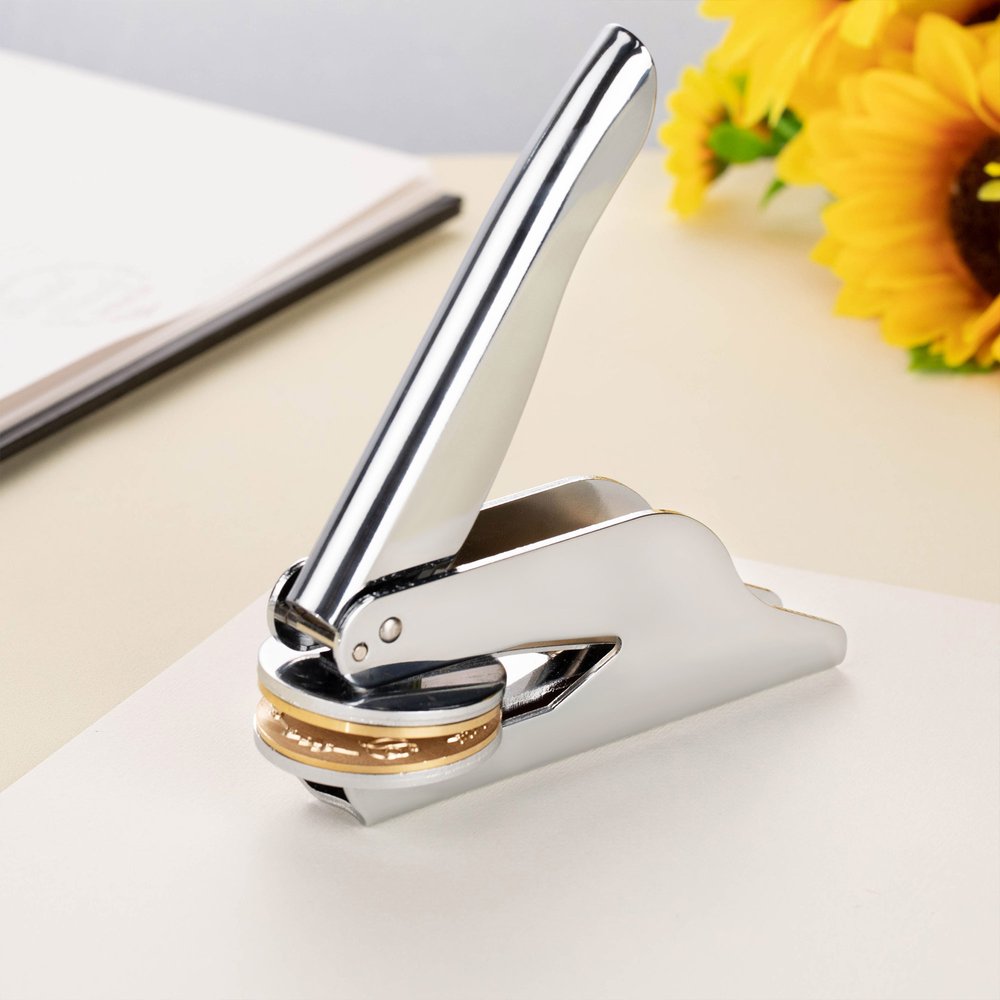 Fabricada en metal de alta calidad, esta gofradora está hecha para durar. Su robusta construcción garantiza que cada impresión sea clara y precisa, dejando una marca duradera en sus libros durante años. El mango está diseñado ergonómicamente para facilitar su uso, por lo que es una adición práctica y elegante a su colección de accesorios de escritura.