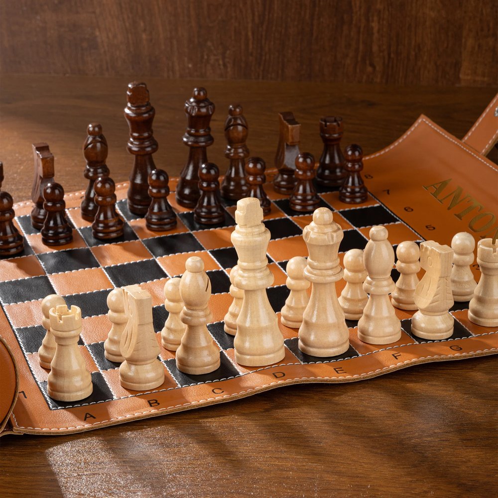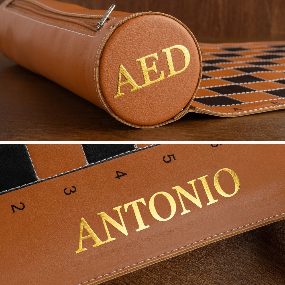Este tablero de ajedrez enrollable ofrece la opción de personalizar texto o monogramas, convirtiéndolo en un regalo único y especial. Su diseño elegante incluye un tablero flexible que se enrolla para facilitar su transporte. Ya sea para viajar, jugar de manera casual o como pieza decorativa, está pensado para adaptarse a tu estilo de vida.