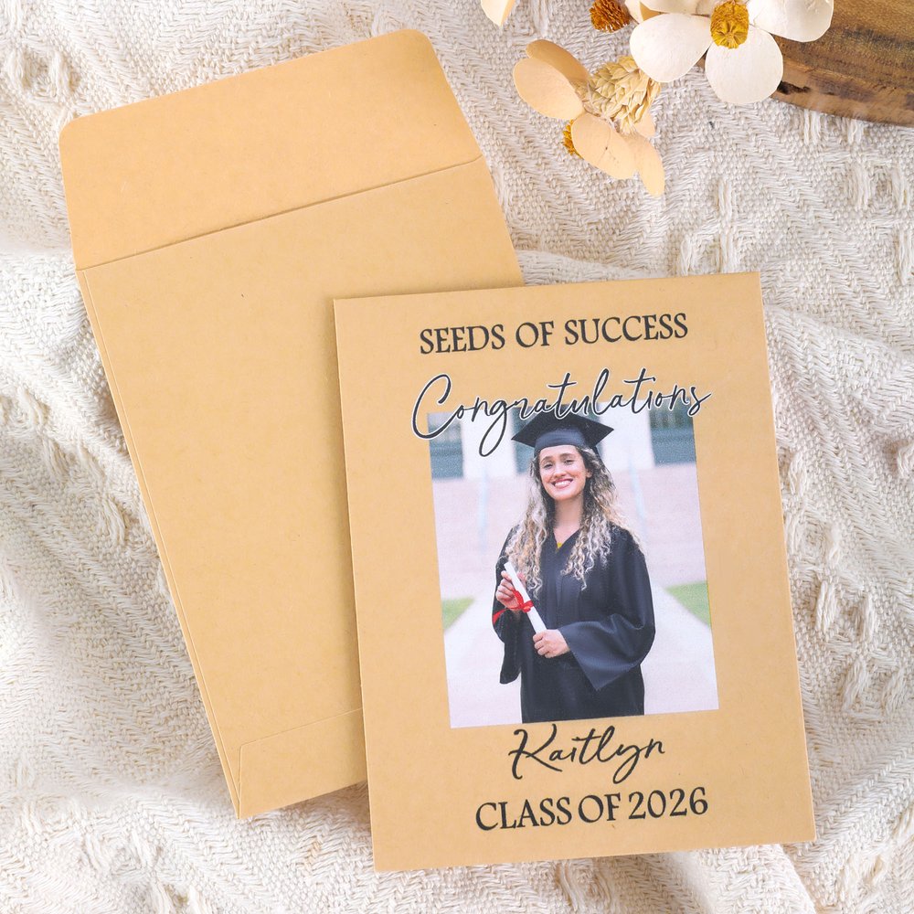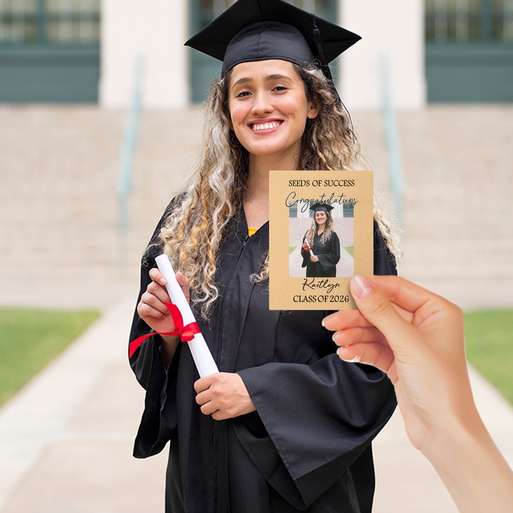 Este paquete de semillas lleva impresas las palabras "Semillas del Éxito", y puede añadir semillas para simbolizar el potencial y el crecimiento, convirtiendo la graduación, un momento importante en la vida, en un hermoso deseo digno de ser atesorado y protegido. Cada paquete de semillas puede imprimirse con el nombre, la foto y el año del graduado, lo que no sólo es conmemorativo, sino que también simboliza el crecimiento, la esperanza y un nuevo comienzo.