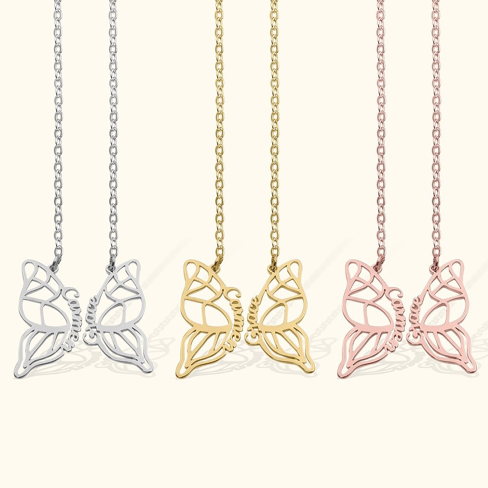 El elegante collar mariposa se puede separar para que lo lleven 2 personas, y cuando se combinan, es una mariposa con las alas desplegadas, símbolo de libertad y de volar juntos hacia un futuro brillante. La sencilla belleza de nuestro collar statement te permite crear collares únicos para mujer que combinarán con cualquier estilo.