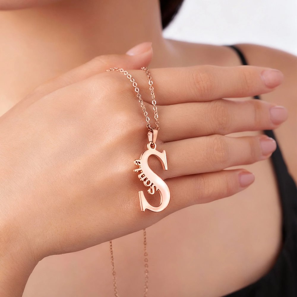 Nuestro collar adopta un diseño estético minimalista, combinando hábilmente una gran inicial con el nombre, resaltando una exquisita sencillez. Cada letra está cuidadosamente cortada, con contornos claros y líneas suaves, mostrando a la perfección el encanto de la personalización exclusiva.