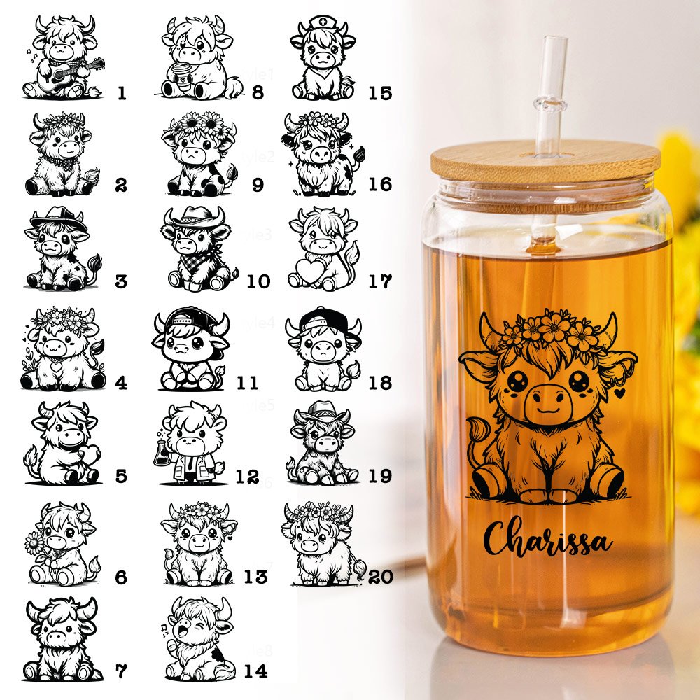 Combina el estilo boceto con el diseño de la Vaca de las Tierras Altas. 20 motivos diferentes capturan los distintos movimientos y expresiones de la Vaca de las Tierras Altas, presentando una variedad de estilos como lindo, juguetón, infantil y cálido. Puede imprimir su nombre en la parte delantera, lo que le permitirá expresar su personalidad.