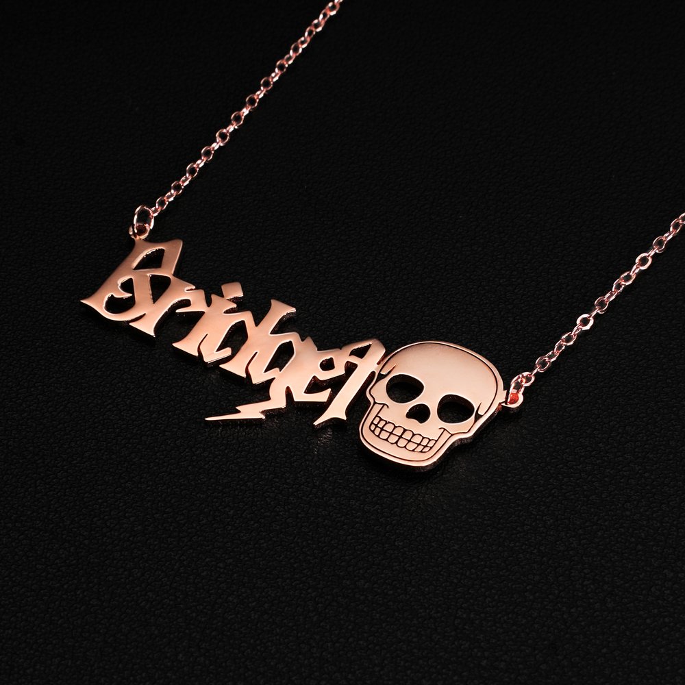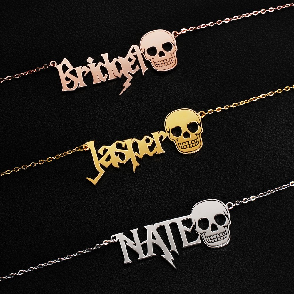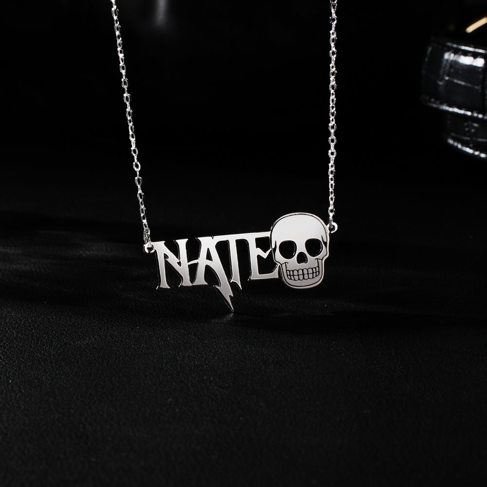 Este collar mezcla ingeniosamente elementos góticos y de rock metálico, con líneas afiladas en su forma de calavera y fuentes góticas modernas, mostrando una personalidad llamativa y un encanto oscuro. Es más que un accesorio: encarna una actitud. Cada collar puede personalizarse con su nombre exclusivo, representando a la perfección un espíritu de libertad y rebeldía, símbolo de audacia y una filosofía de la moda distintiva.