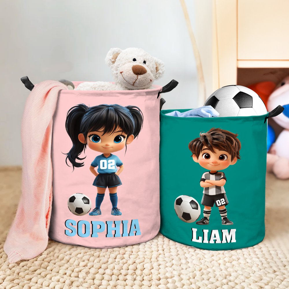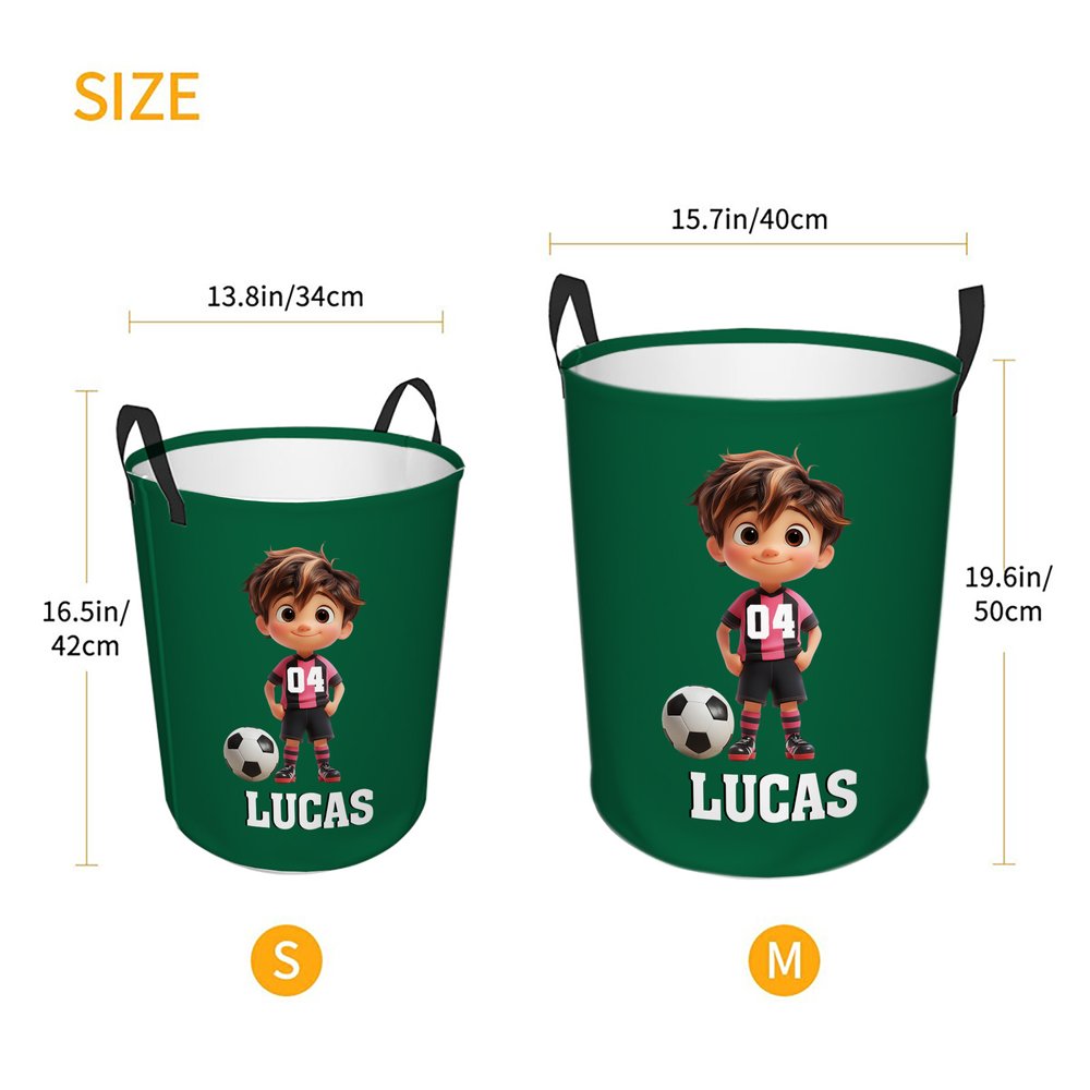 Elige entre 29 colores, con personajes de dibujos animados en 3D con temática de fútbol para niños y niñas. Personalízala con el nombre y el número de tu hijo para crear una cesta de almacenaje única que refleje tu individualidad. Cada niño puede encontrar su estilo perfecto, añadiendo un toque único a cualquier espacio.