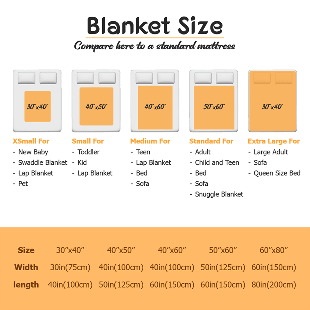 Medidas: Manta polar - 75 cm × 100 cm, 100 cm × 125 cm, 100 cm × 150 cm, 125 cm × 150 cm, 150 cm × 200 cm, Manta Sherpa - 100 cm × 125 cm, 125 cm × 150 cm, 150 cm × 200 cm