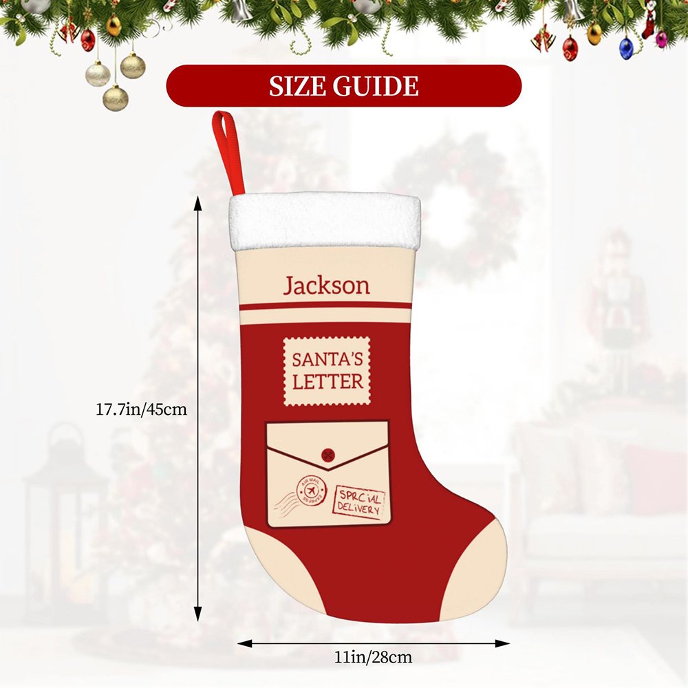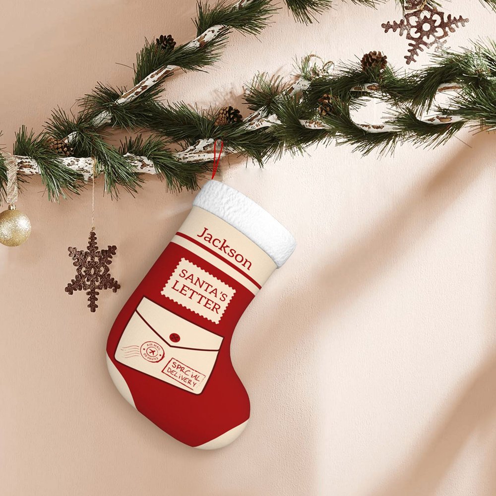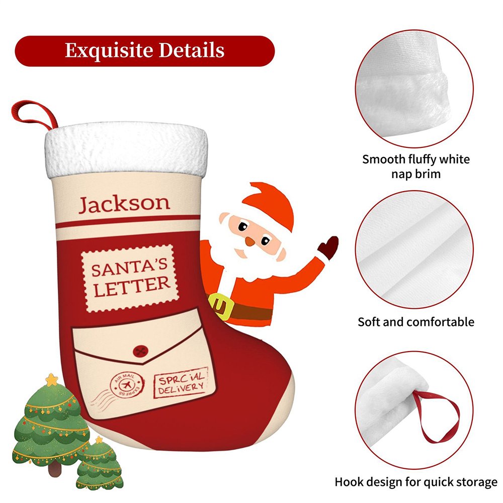 Esta media de Navidad se puede personalizar con el nombre del destinatario, lo que aumenta la singularidad y la sensación especial del regalo. La adición de la carta de Papá Noel hace que la fiesta parezca más ceremonial.
