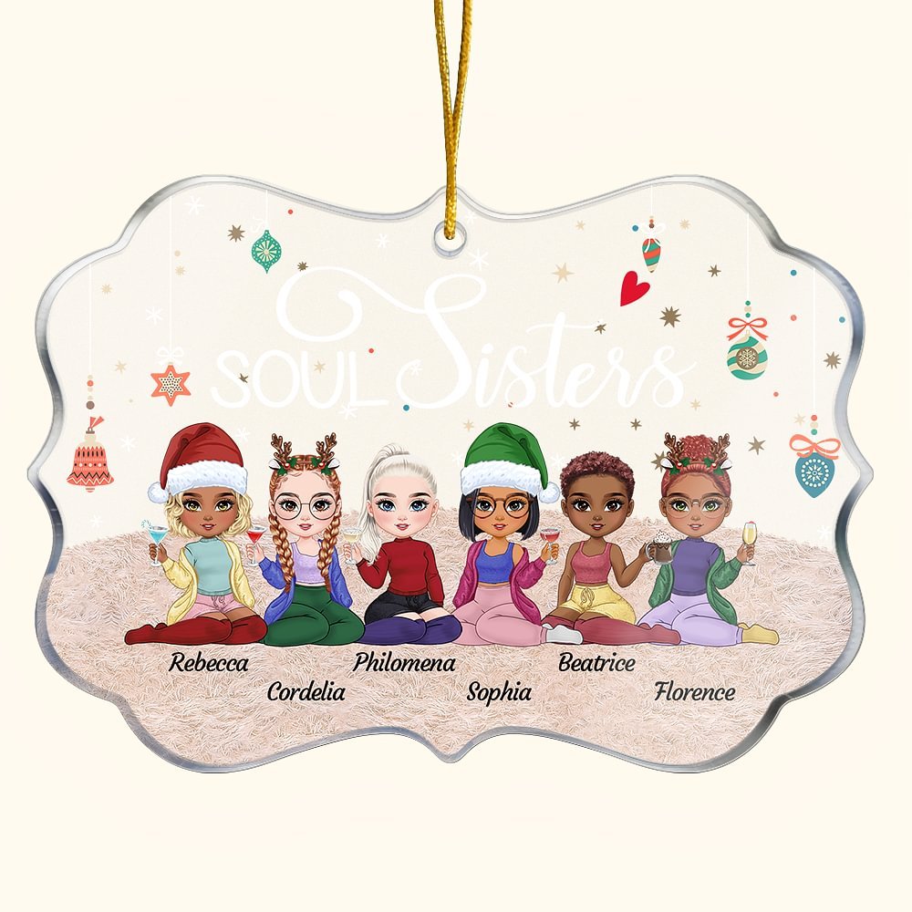 La pieza central de este impresionante adorno es una sentida cita, "Soul Sisters", bellamente impresa en la parte delantera. Esta frase simboliza el vínculo inquebrantable que compartes con tu mejor amiga, recordándole los innumerables recuerdos y aventuras que habéis vivido juntas. Cada vez que miren este adorno, recordarán los momentos entrañables que han forjado su amistad.