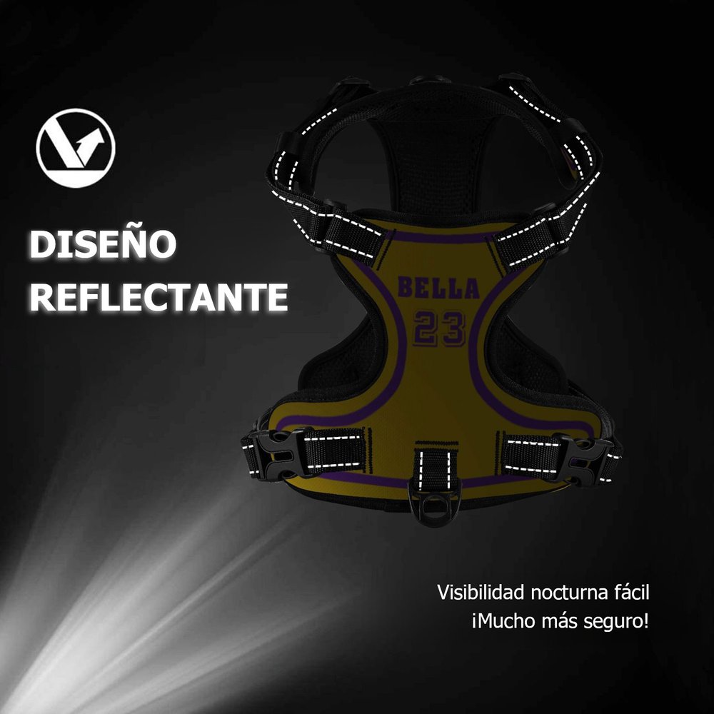 Inspirado en las camisetas de los atletas, este arnés para mascotas está disponible en 10 colores vibrantes para que elijas el que mejor se adapte. Personalízalo con el nombre de tu querido compañero y su número favorito, transformando a tu mascota en tu compañero más leal para las aventuras de la vida.
