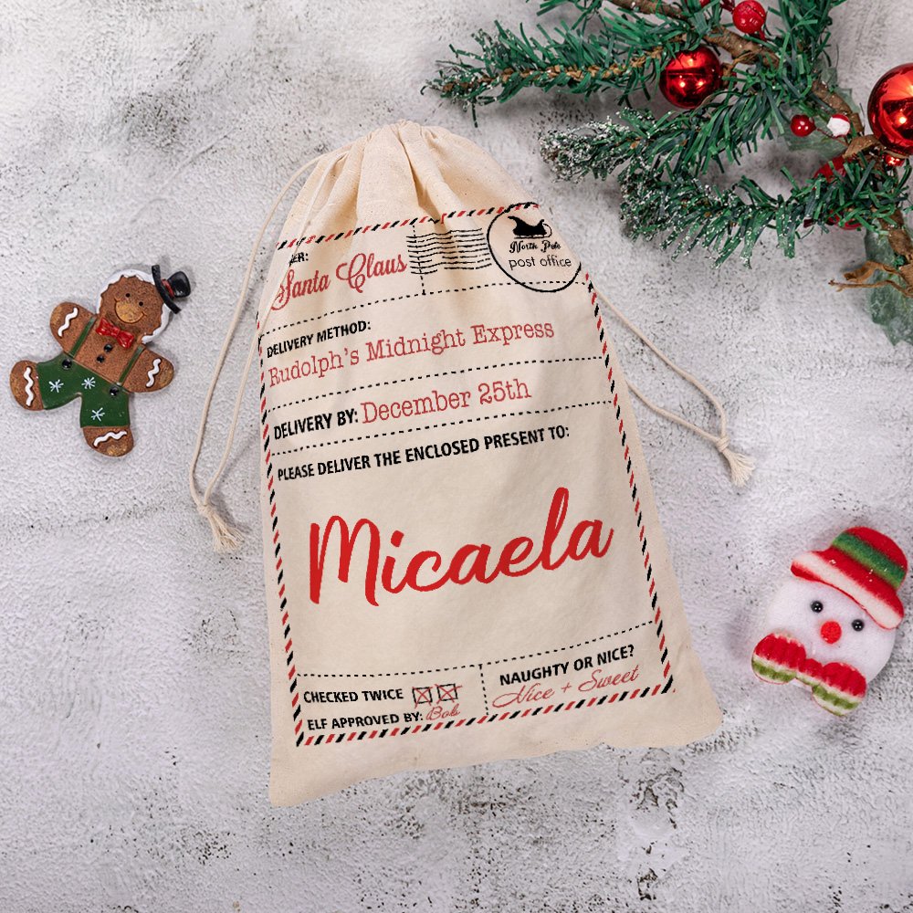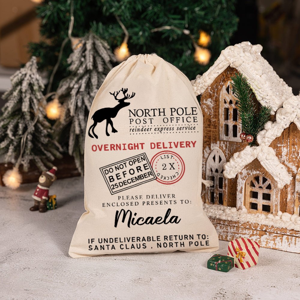 Sello personalizado de matasellos de Alce Santa Saco reutilizable bolsa de regalo con nombre de la fiesta de Navidad Regalo para los niños de la famil