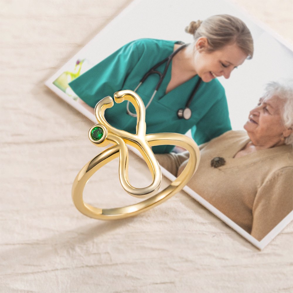 El diseño único de este anillo, creado con el símbolo médico clásico del estetoscopio como inspiración, expresa gratitud y admiración por los profesionales de la salud, y el hermoso concepto de diseño hace que este anillo sea aún más especial.