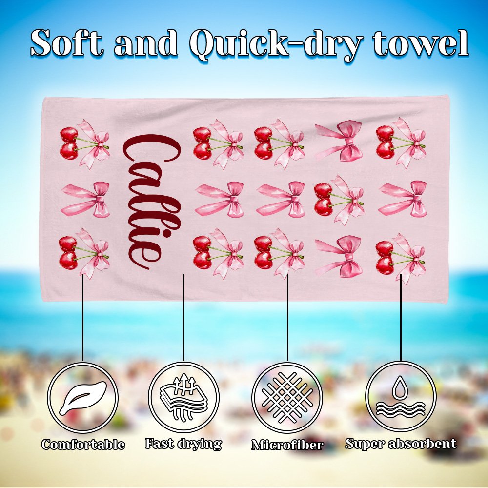 Personalizada Sweet Cherry Coquette Lazo Nombre De Secado Rápido De Gran Tamaño Toalla de Playa Vacaciones de Verano Imprescindible Regalo de Cumpleaños para Mujeres Niñas