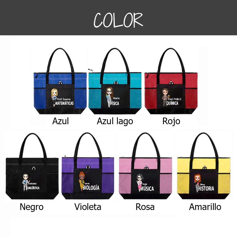 Puedes personalizar este bolso con un diseño de profesor de dibujos animados y elegir entre siete colores para que coincida con tu estilo único. Además, puedes agregar tu nombre y asignatura para convertirlo en tu compañero perfecto de enseñanza.