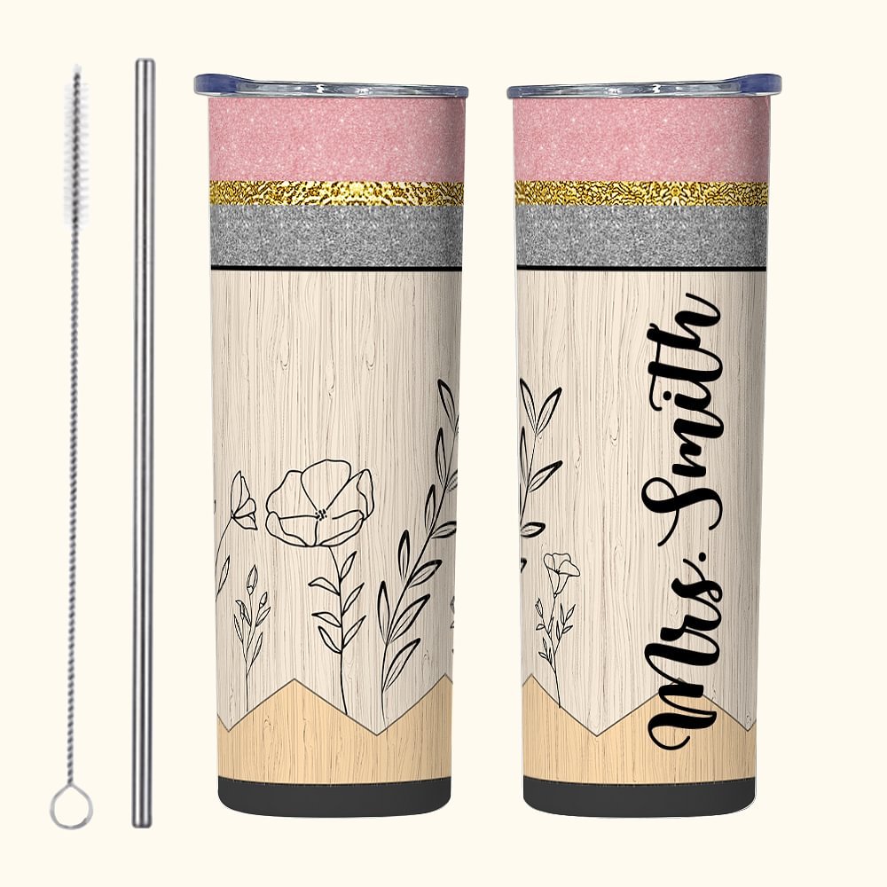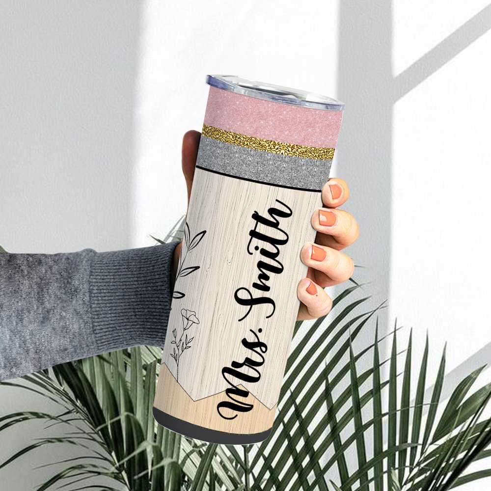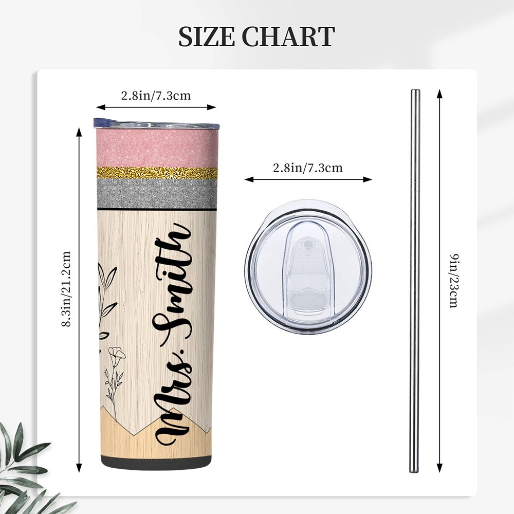 La forma exterior de este vaso está inspirada en el lápiz, lo que lo convierte en un regalo perfecto para profesores. El cuerpo del vaso está adornado con motivos de flores y hojas esbozadas a lápiz, creando un aspecto vintage y artístico. Tanto si se utiliza a diario en la oficina como en actividades al aire libre, este vaso destaca por su distintivo diseño. Debe tenerse en cuenta que los elementos de purpurina del producto están impresos y no son purpurina física real.