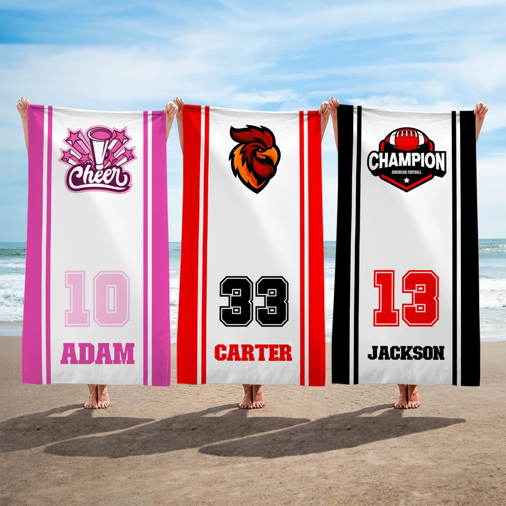 Esta toalla de playa deportiva es perfecta para atletas, entrenadores o aficionados al deporte. Ya sea para el cumpleaños de un miembro del equipo, una celebración después de un partido o como muestra del espíritu de equipo, combina funcionalidad con orgullo de equipo personalizado, haciendo que los destinatarios se sientan parte del equipo mientras disfrutan de la comodidad en piscinas, playas o eventos deportivos.