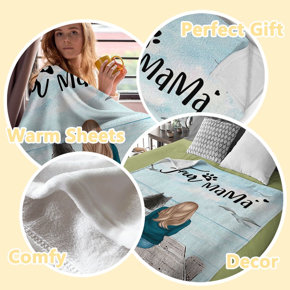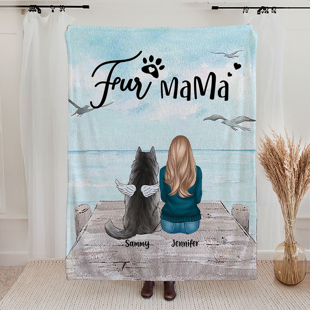 El mensaje "Fur Mama and Fur Papa" está bellamente impreso en la manta, recordando los buenos momentos compartidos entre perros y dueños.