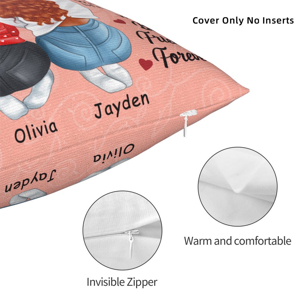 Puedes personalizar la funda de almohada con tu nombre y el de tu mejor amiga, así como con la imagen de los dibujos animados. Además, estas frases de mejores amigas hacen de esta funda de almohada un recuerdo único entre vosotras.