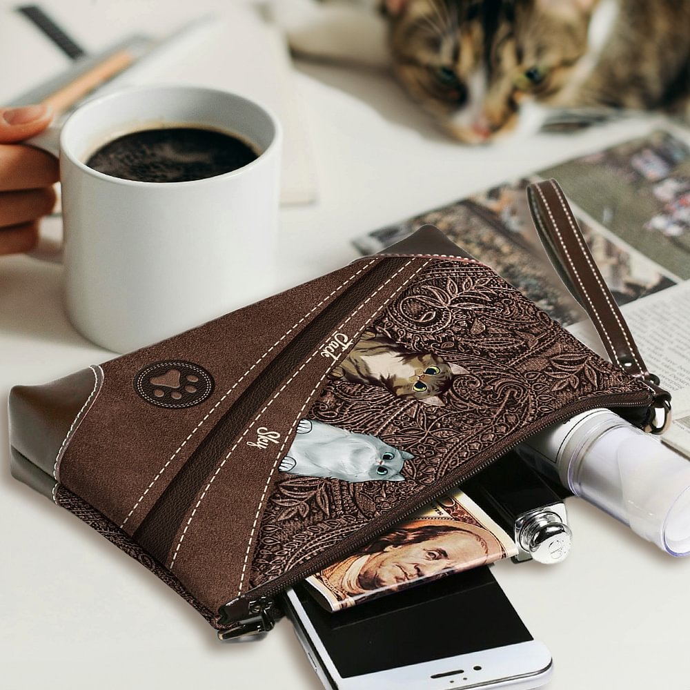 Esta elegante cartera vintage presenta un simpático diseño con temática de mascotas que muestra a tu amigo peludo, lo que la convierte en el accesorio perfecto para los amantes de las mascotas. Se pueden imprimir hasta cinco mascotas en la cartera, cubriendo la mayoría de razas de perros y gatos, y también puedes personalizar el nombre de la mascota para añadir un toque único, haciendo de esta cartera un fiel reflejo del profundo vínculo entre tu mascota y tú.