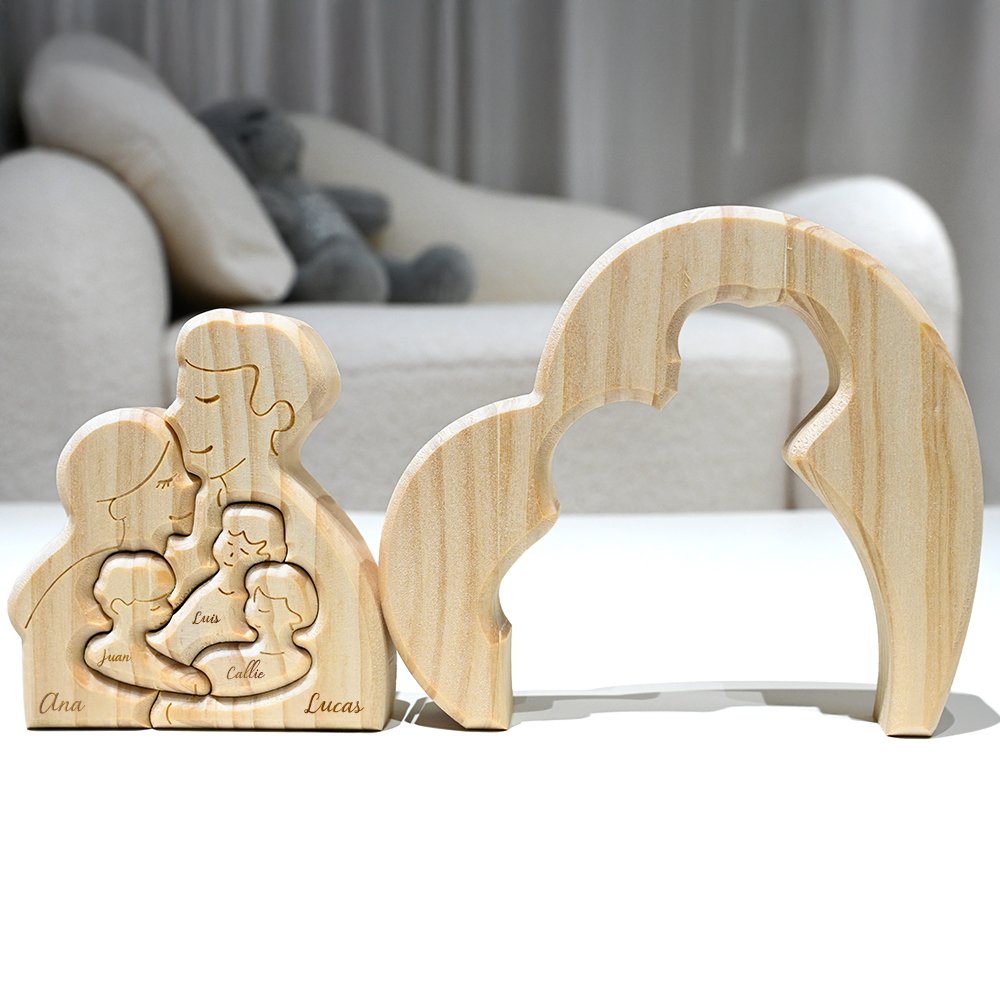 Este rompecabezas en forma de corazón presenta piezas de rompecabezas con personajes finamente elaborados, con una familia abrazándose, mostrando la unidad y cohesión familiar y reflejando el verdadero significado de la reunión. El diseño es tanto artístico como significativo, y puedes personalizarlo con 2-5 nombres. No solo es una pieza decorativa, sino también un recordatorio atemporal del amor y el apoyo brindados por tu familia.