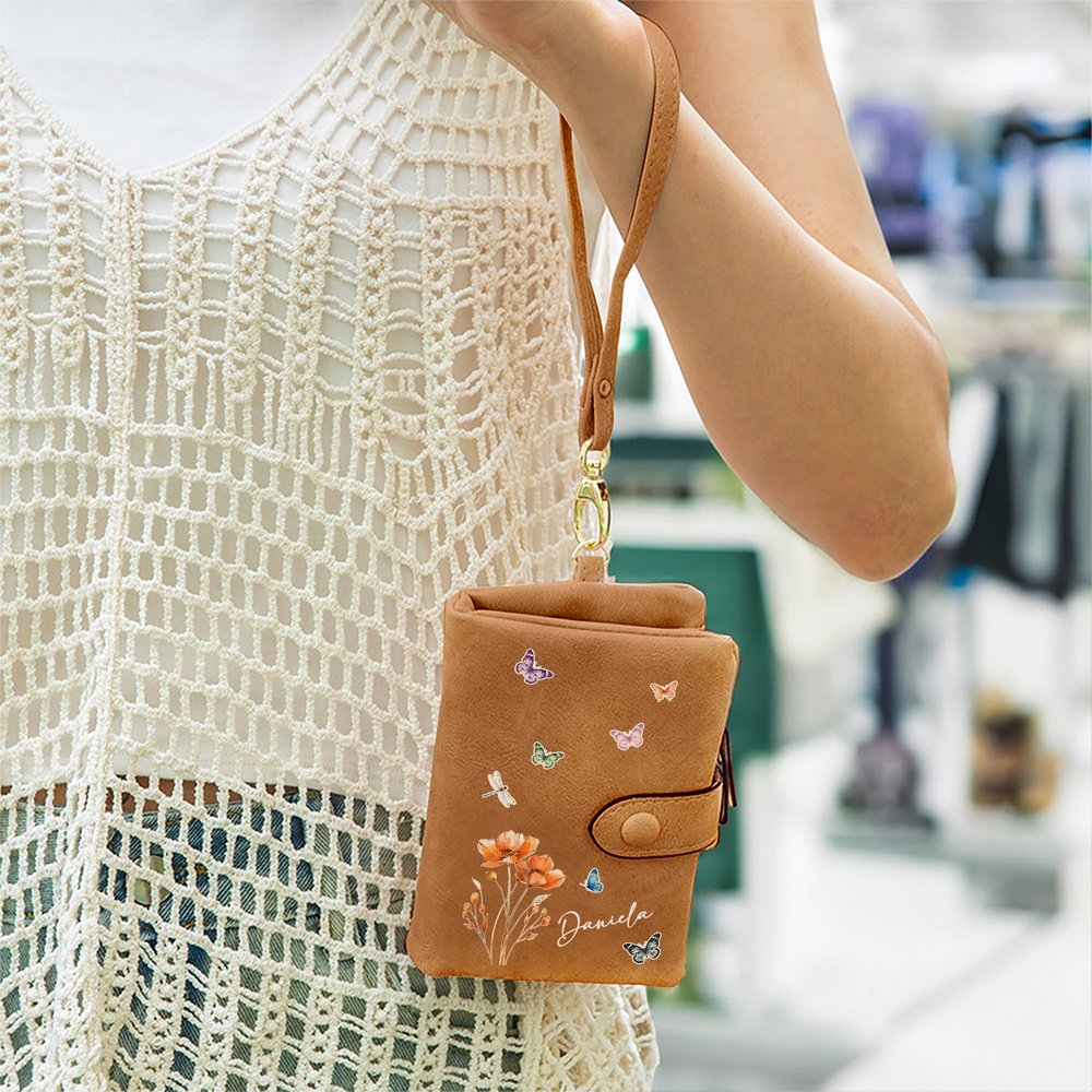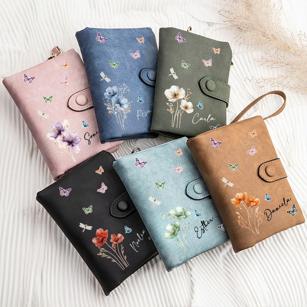 Puede elegir entre 6 opciones de colores Morandi, seleccionar entre 16 diseños florales en acuarela e introducir un nombre personalizado. De este modo, la cartera se convierte en una pieza única que combina arte y estilo personal, perfecta para cualquiera que desee un accesorio único.