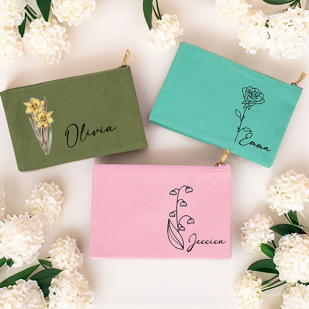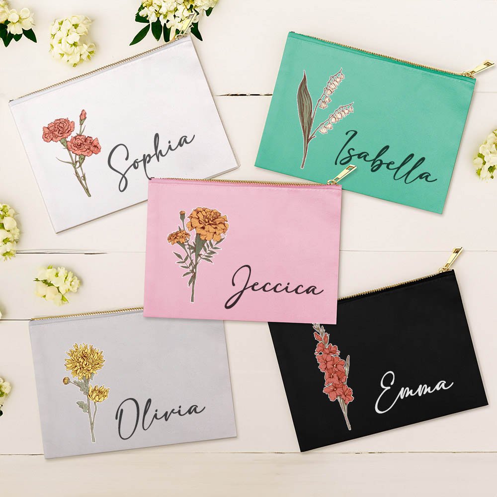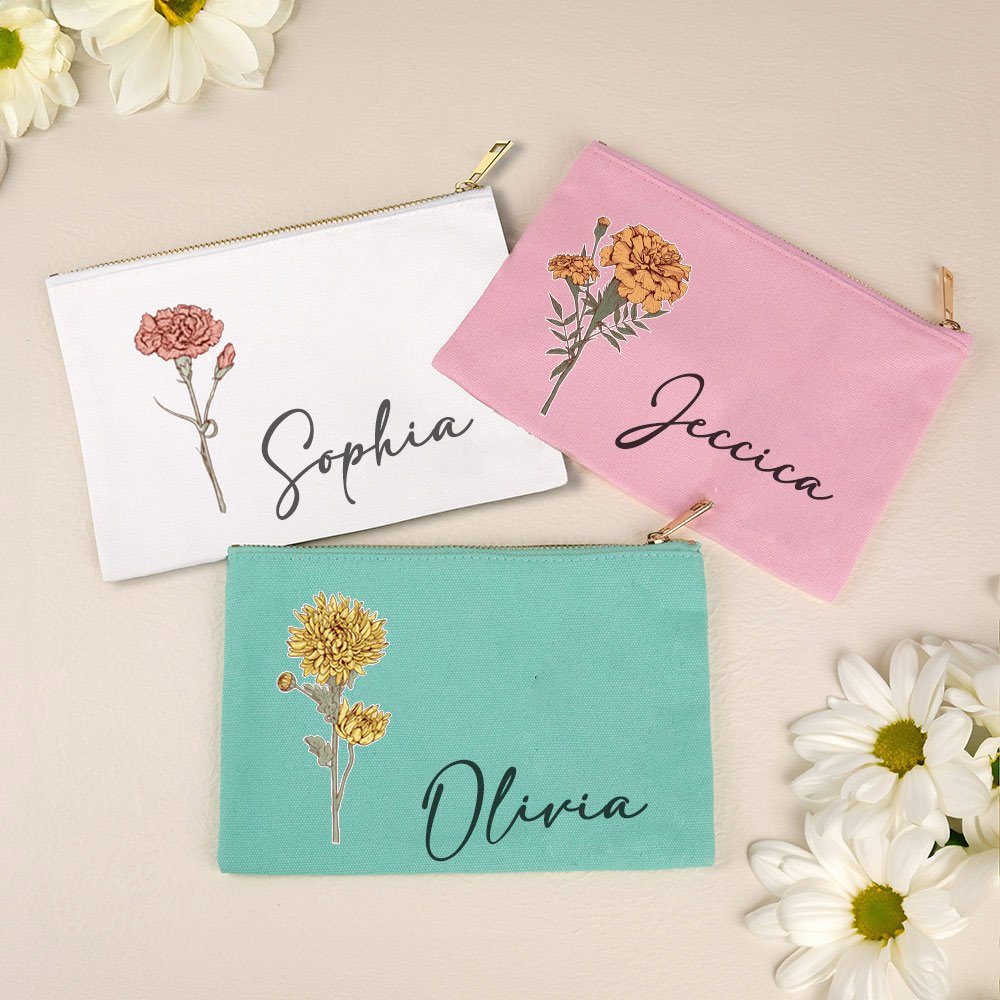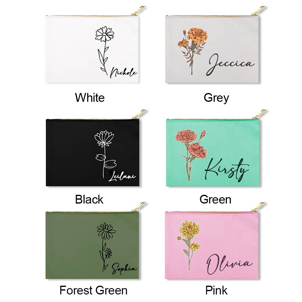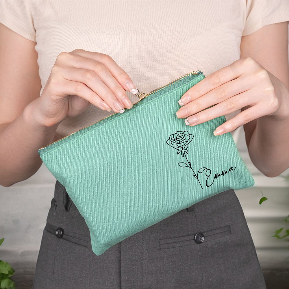 Cada neceser de maquillaje se puede personalizar con la flor de nacimiento y el nombre de la destinataria, lo que lo convierte en un regalo con un significado único que refleja el estilo personal. El diseño sencillo y a la moda es perfecto para cualquier ocasión.