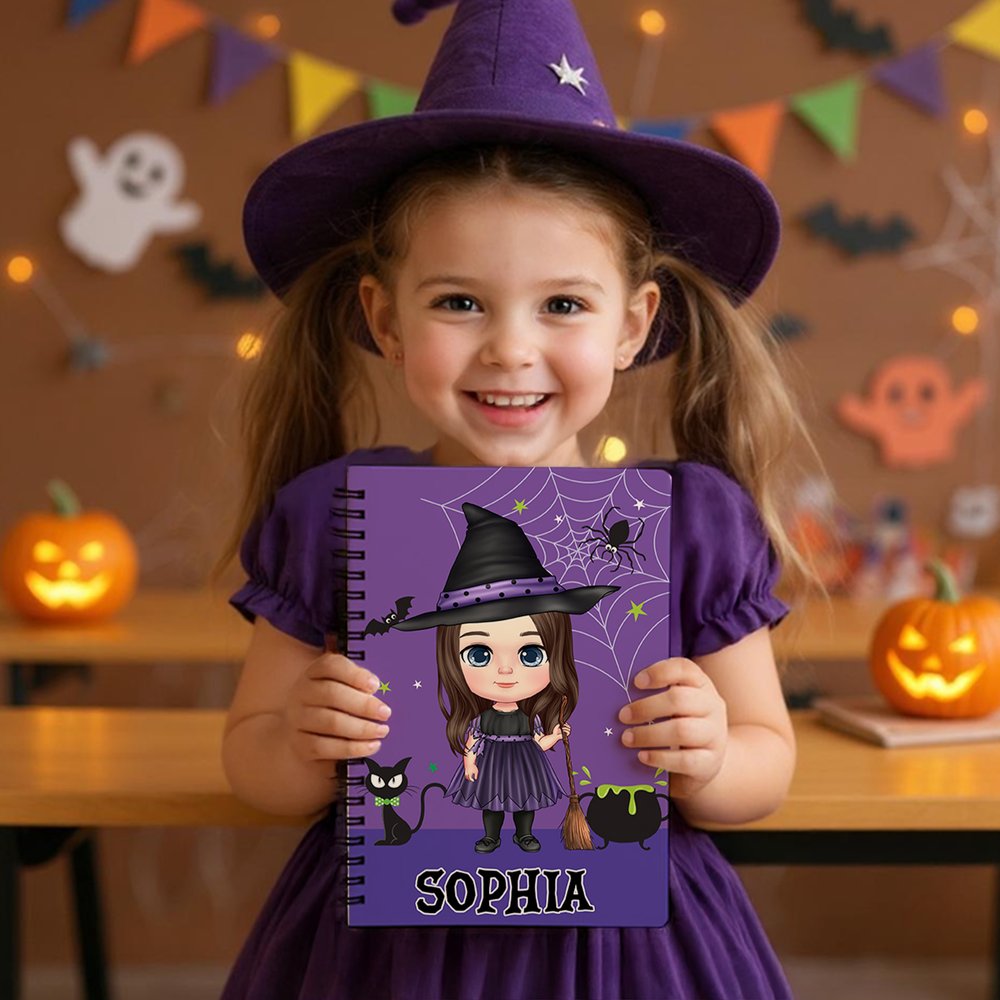 Con personajes de dibujos animados de Halloween como elemento central del diseño, la portada puede personalizarse con un nombre propio. El estilo general destila el espíritu lúdico y divertido de la fiesta. Los personajes de dibujos animados son vibrantes y adorables, en perfecta consonancia con el alegre ambiente de Halloween. El nombre personalizado confiere al cuaderno una identidad única, transformándolo de un mero instrumento de escritura en un recuerdo festivo que refleja la personalidad del individuo.