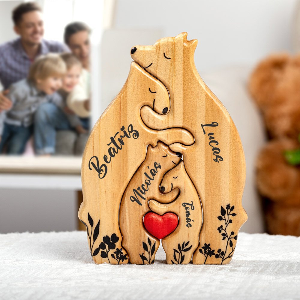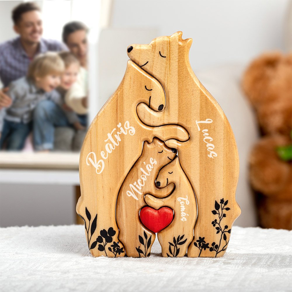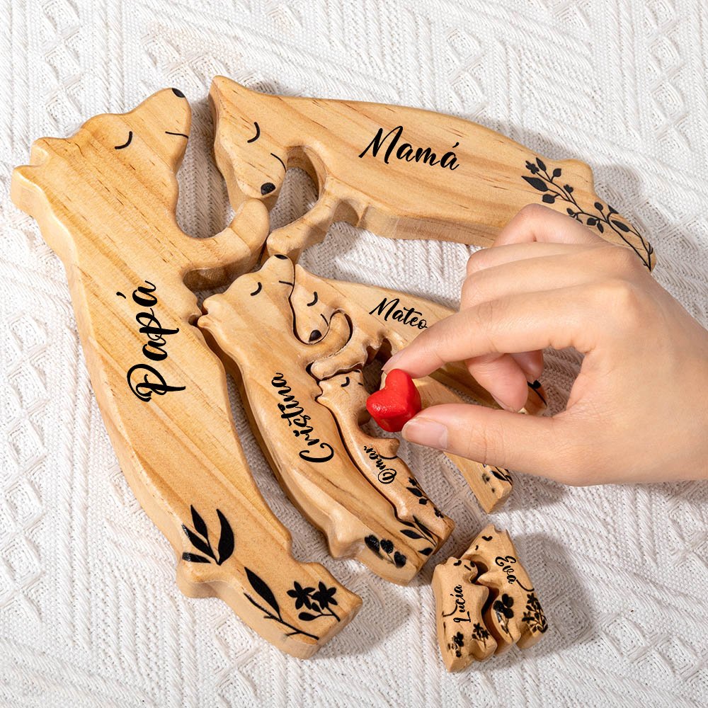 ¿Buscas un regalo único y sentimental para tu familia? No busques más, nuestro rompecabezas familiar de osos de madera personalizado es la opción perfecta. Esta hermosa pieza de recuerdo se puede personalizar con 2-8 osos, cada uno con un nombre, representando a tu unidad familiar con todo el amor.