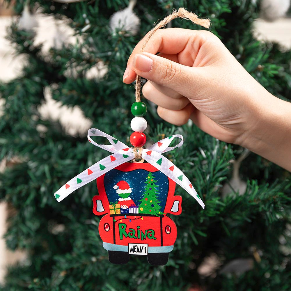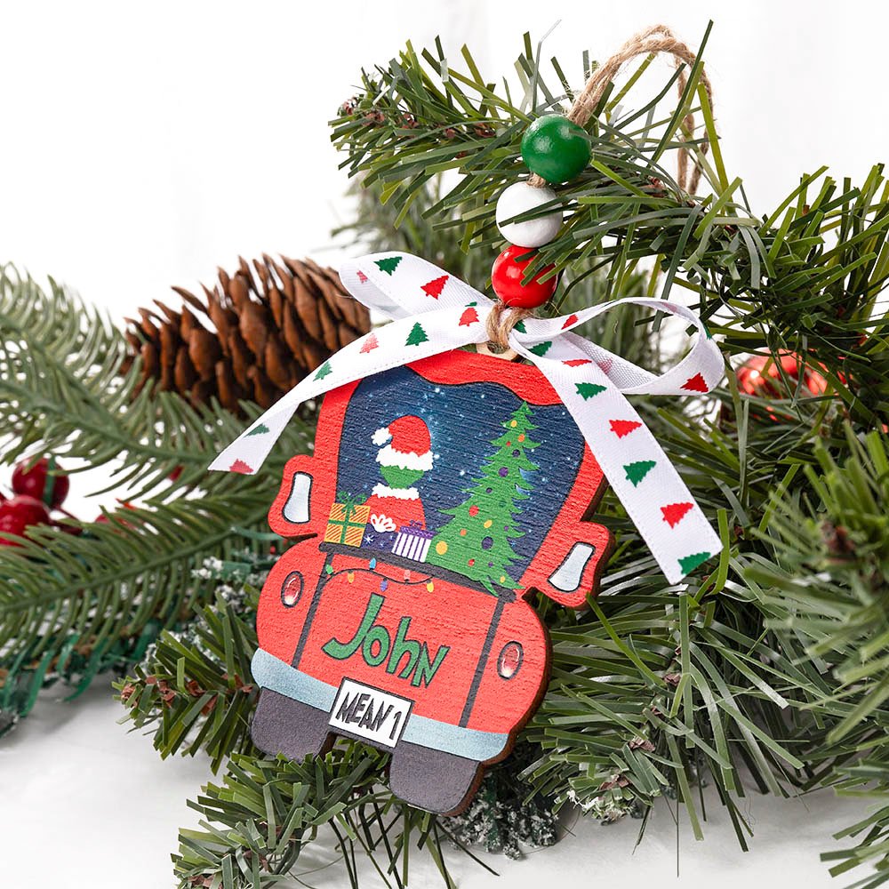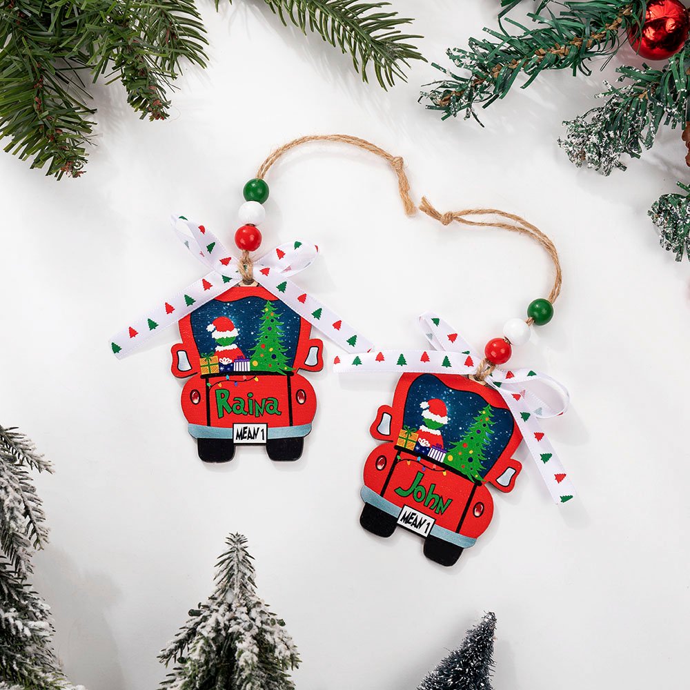 Este adorno navideño muestra un camión con un árbol de Navidad, Papá Noel y regalos, simbolizando a Papá Noel conduciendo un camión para entregar regalos de Navidad, inyectando ambiente festivo y encanto, convirtiéndolo en un adorno llamativo en cualquier árbol de Navidad. También se puede personalizar con un nombre, convirtiéndolo en un adorno único y significativo.