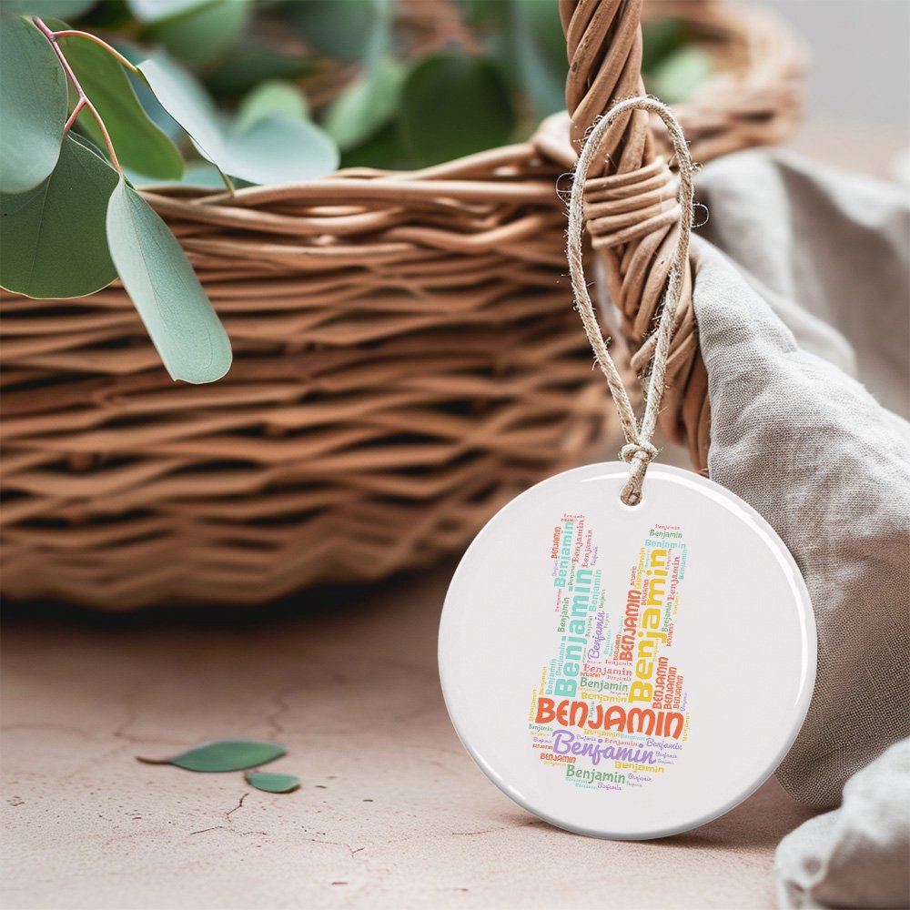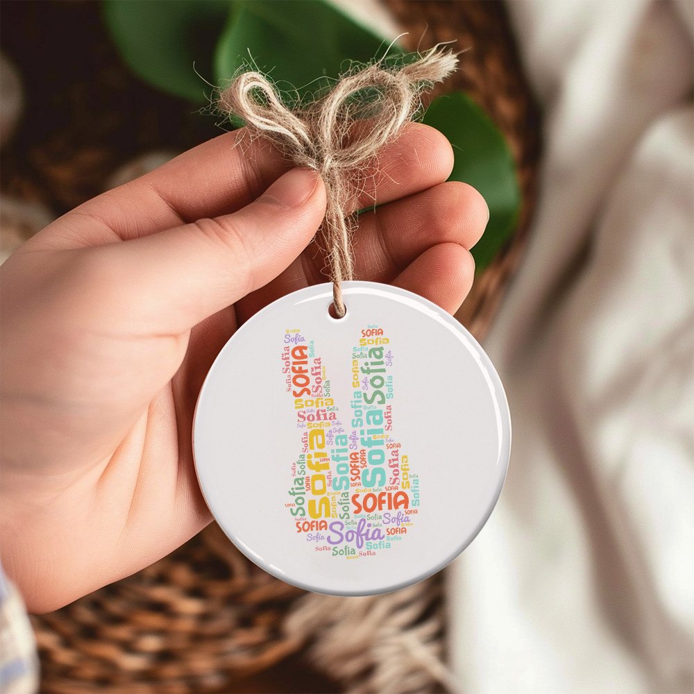 Este adorno de Pascua es una forma especial de añadir un toque personalizado a su decoración navideña. El colorido nombre forma un conejito único y lleno de diseño, creando un regalo único que demuestra amor y calidez.