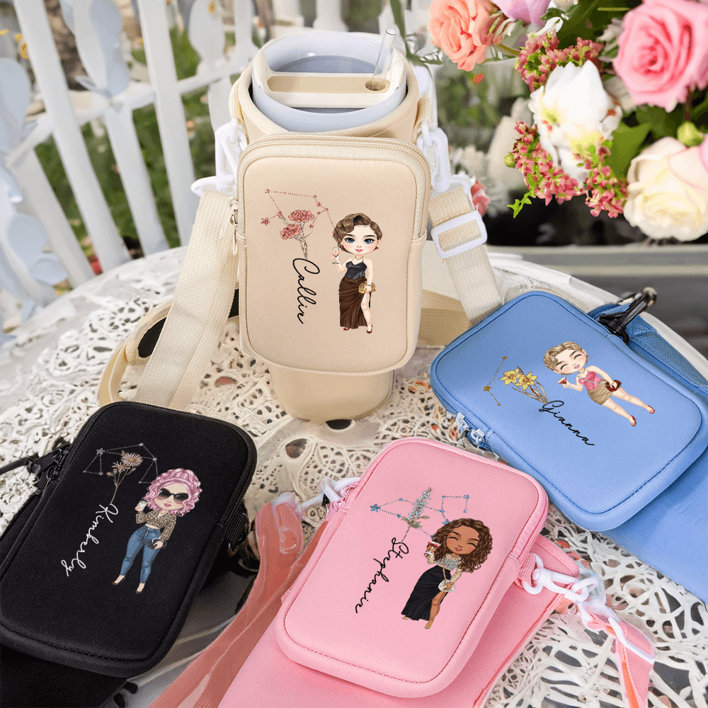 Nuestra bolsa para botellas de agua destaca por sus signos del zodiaco y flores de nacimiento. También se puede personalizar con un personaje de dibujos animados con estilo y el nombre, reflejar perfectamente su personalidad única. Ofrecemos 4 colores de bolsa, beige, rosa, negro o azul para usted, y usted puede elegir en función de su preferencia.