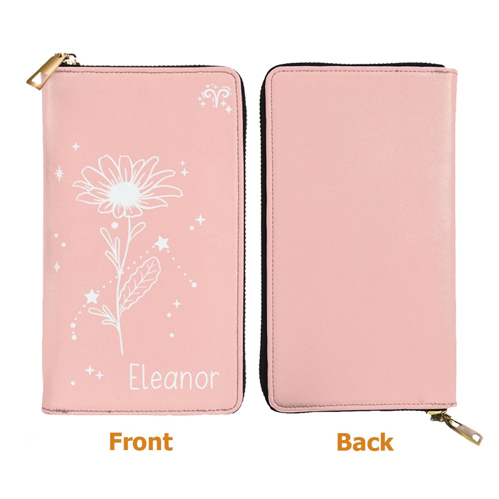 Se trata de una cartera sencilla pero única que utiliza una combinación de flores del zodiaco y de nacimiento para añadir un toque único y personal. Puedes personalizarla con la flor del zodiaco y el nombre del destinatario, convirtiéndola en un regalo significativo y precioso.