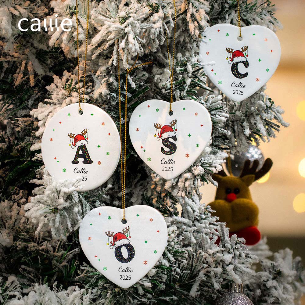 Nuestro adorno navideño personalizado de cerámica, combinado con elementos navideños tradicionales como gorros de Papá Noel, cornamentas y lazos festivos, es el complemento perfecto para tu decoración navideña. Puedes personalizarlo con las iniciales o los nombres de tus seres queridos. Cuélgalo en tu árbol de Navidad para crear una decoración única y significativa que represente la conexión y el amor dentro de tu familia.