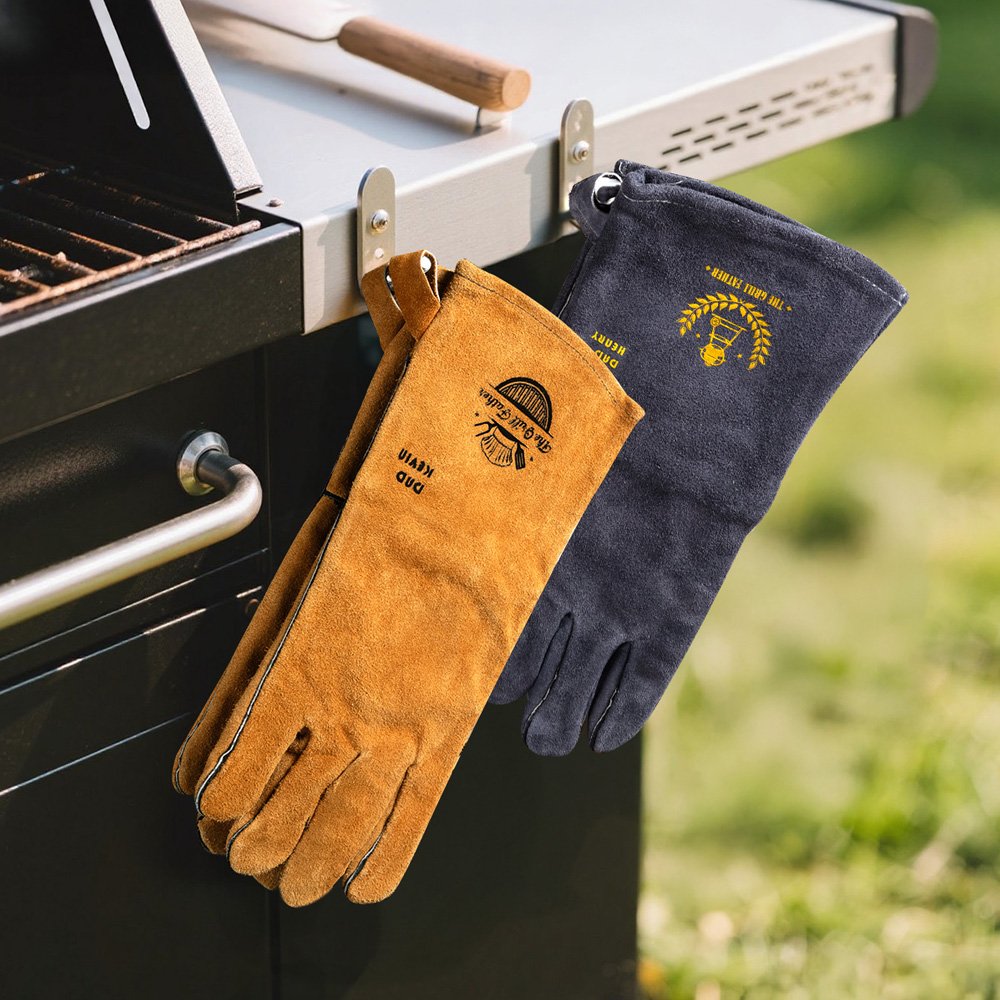 Los guantes BBQ combinan estilo y funcionalidad, con la divertida frase "THE GRILL FATHER". Disponibles en cuatro diseños distintos, estos guantes se pueden personalizar con el nombre de tu padre, lo que los convierte en un regalo único que muestra su personalidad mientras cocina.