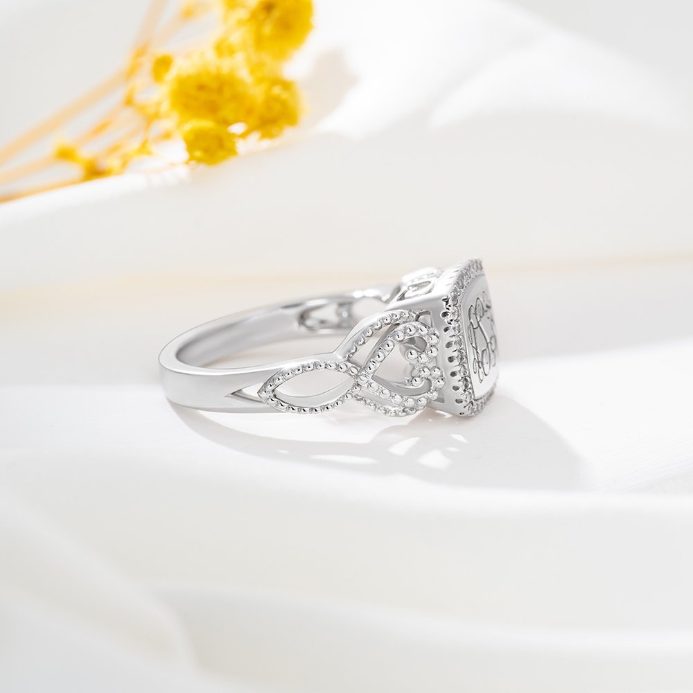 Una muestra de amor personalizada Este anillo de circonitas con monograma es algo más que una joya: es una sincera expresión de amor y consideración. Ideal para regalar a alguien especial, simboliza el cuidado y la atención al detalle, convirtiéndolo en un preciado recuerdo para los años venideros.